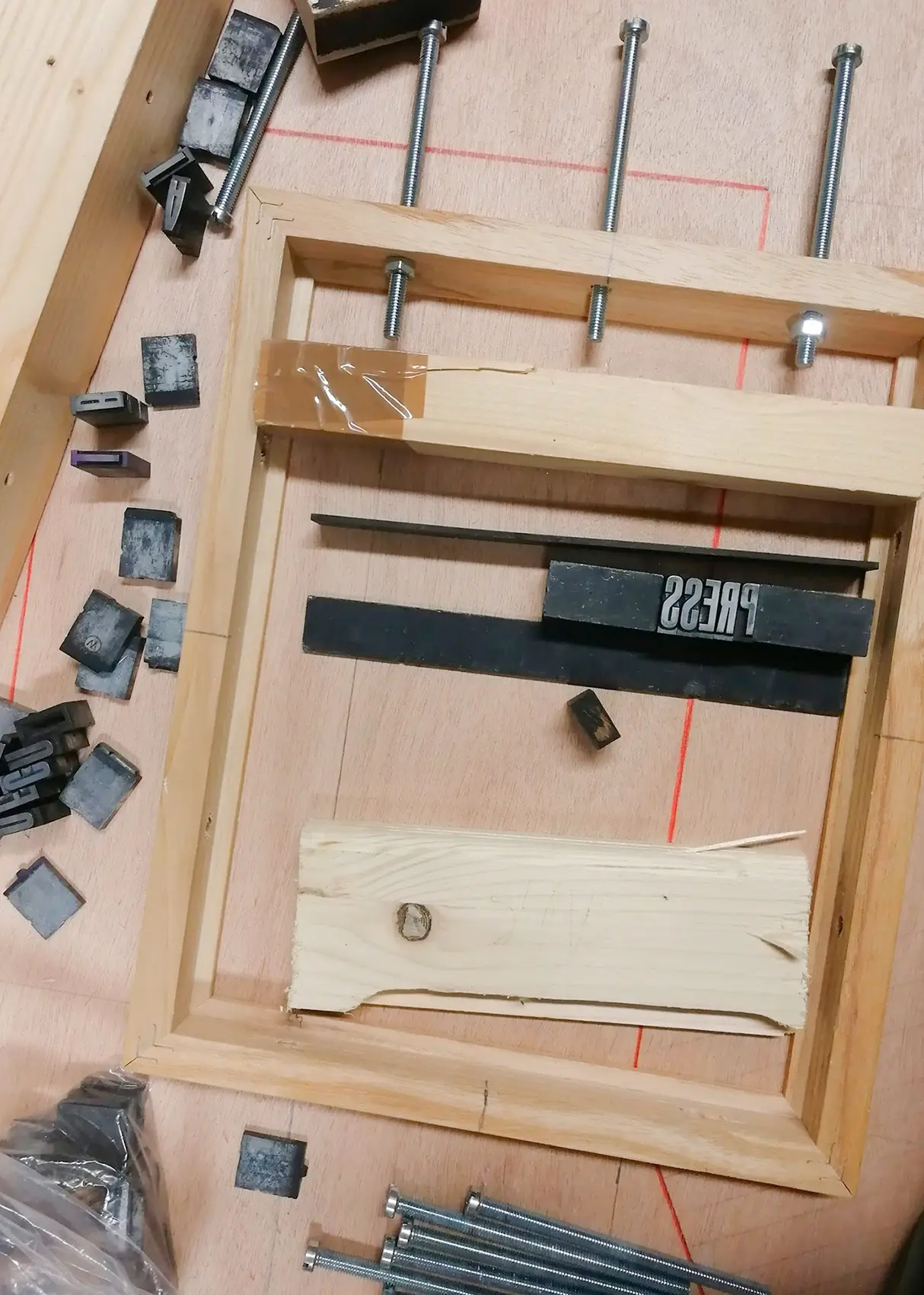 [3] construction d'une presse typographique à partir de matériaux de réemploi